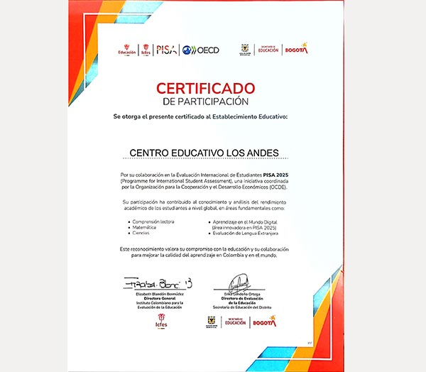 Nuestro colegio, contó con el privilegio de participar en la aplicación de las Pruebas PISA (Programa para la Evaluación Internacional de Alumnos), en la cual, intervienen 91 países.