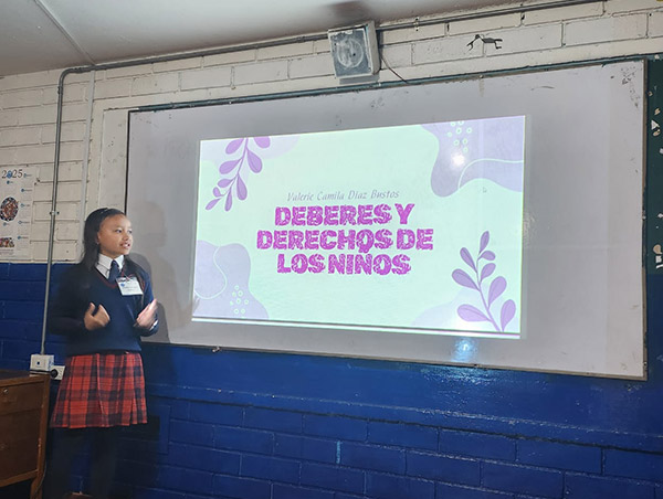 Nuestros futuros escritores Andinista, Mariana Ayala de grado Sexto (6°) participando en la Tertulia Literaria en el Colegio Americano